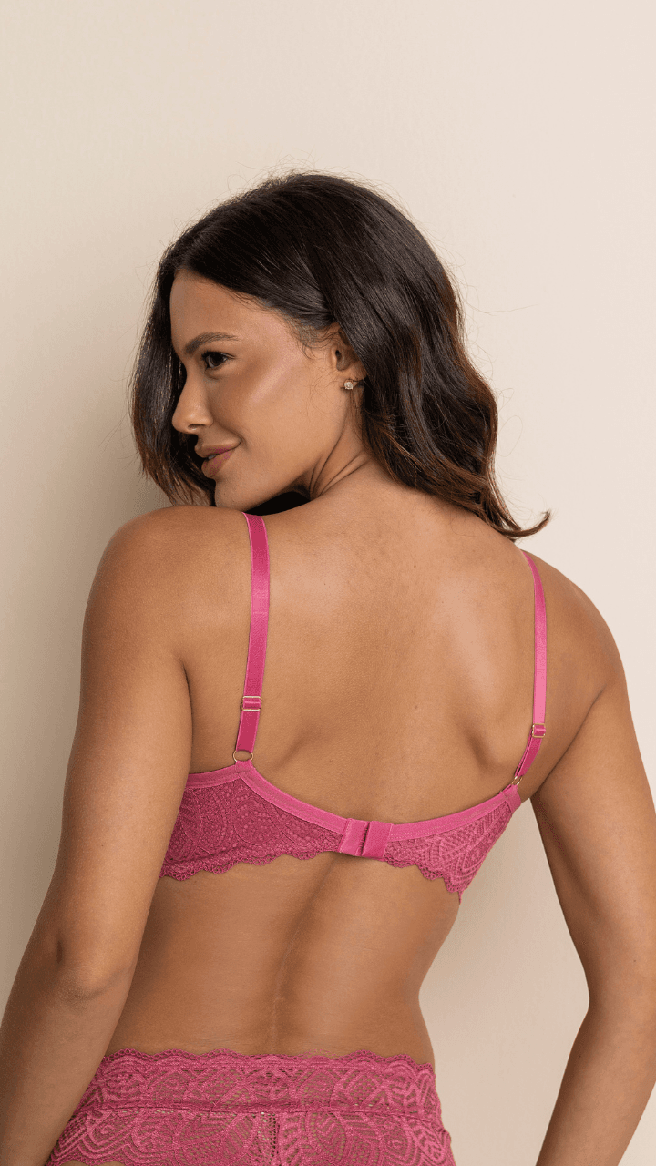 Sutiã com aplicação de renda, com bojo e com aro. Peça íntima que entrega sustentação ao busto e modela as curvas. Alças reguláveis e reforçadas Consulte a cartela de cores e a tabela de tamanhos disponíveis. Entre em contato com o seu consultor de vendas e finalize o seu pedido! Star Life Lingerie, qualidade em moda íntima, fitness e moda praia.