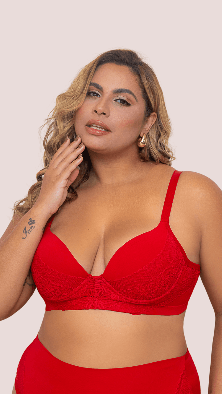 Sutiã de renda com bojo e com aro. Peça íntima disponível nos tamanhos plus size P(46) | M(48) | G (50) que entrega sustentação ao busto sem abrir mão do conforto. Consulte a cartela de cores e a tabela de tamanhos disponíveis. Entre em contato com o seu consultor de vendas e finalize o seu pedido! Star Life Lingerie, qualidade em moda íntima, fitness e moda praia.